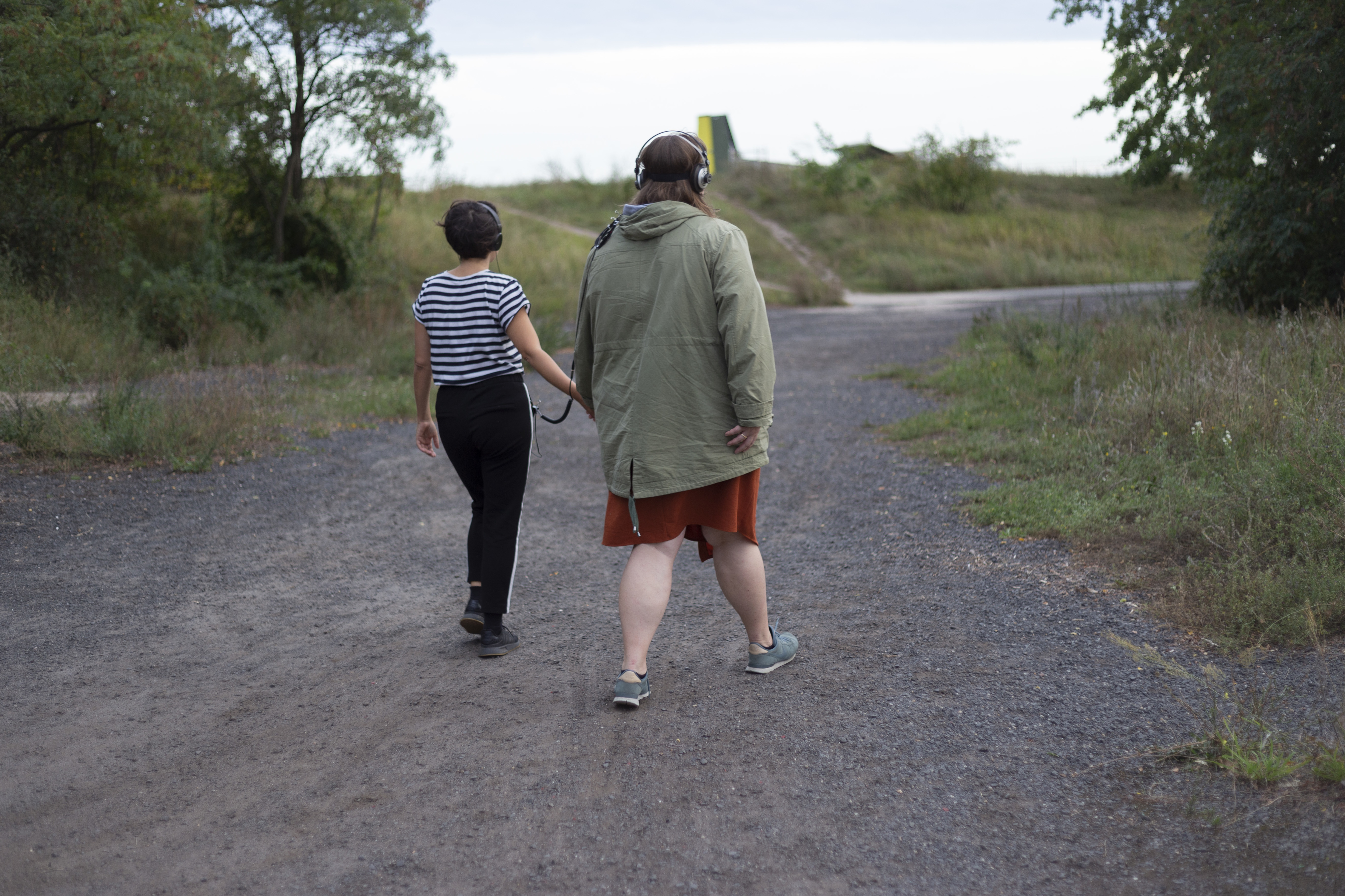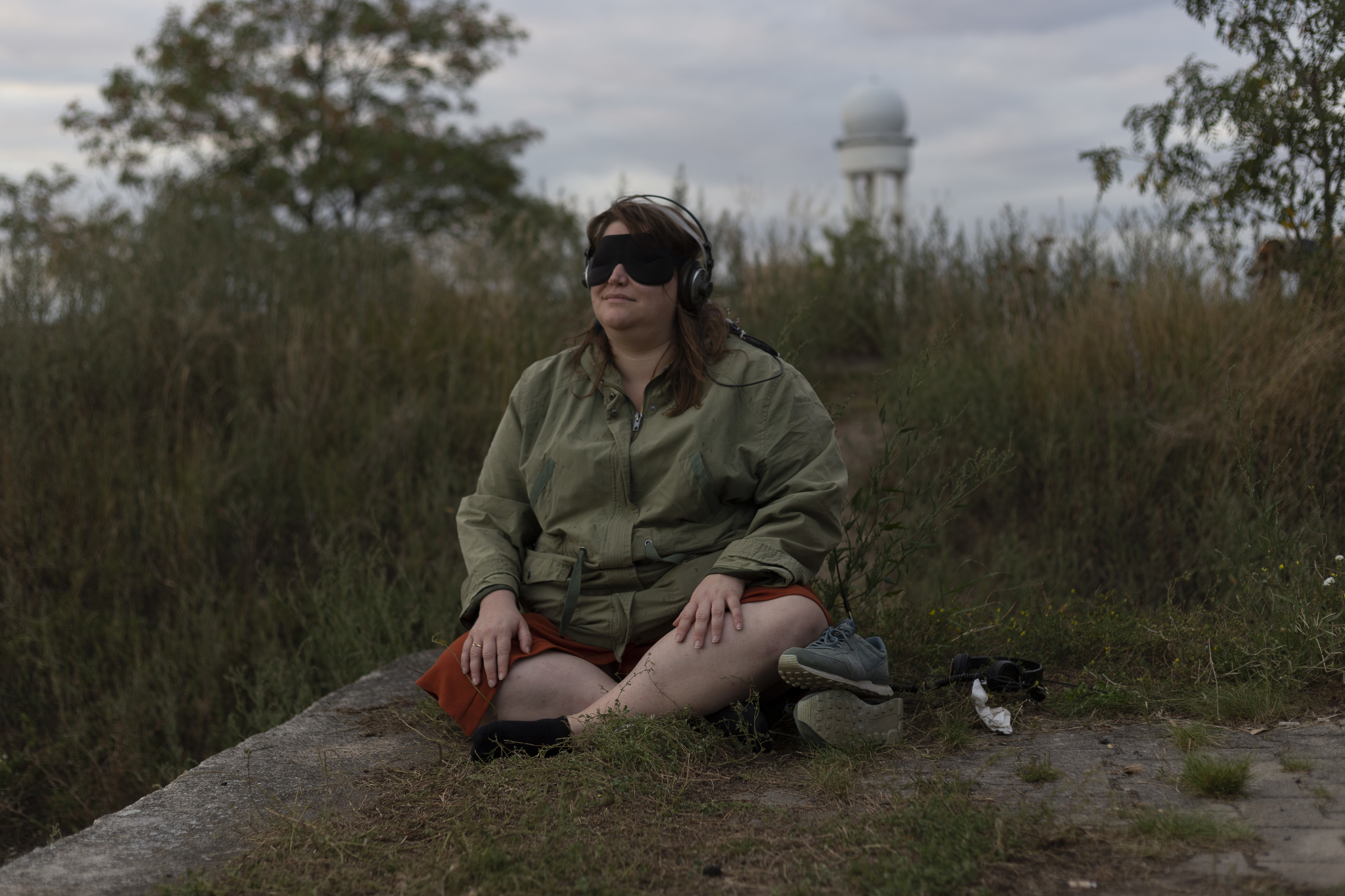 Mit verbundenen Augen und Kopfhörern lassen sich Teilnehmer*innen sanft und sicher von einer stillen Begleitperson durch eine surreale Welt von binaurale Tonaufnahmen führen. Geräusche und Bewegungen verschmelzen mit inneren Bildern. Die traumähnliche Reise ist gleichzeitig vertraut und fremd. Die Grenze zwischen Realität und Fantasie verschwimmt. Die Eins-zu-eins-Audio-Performance ist eine Einladung Ängste zu überwinden, sich Ungewissheit hinzugeben, Kontrolle abzugeben und gleichzeitig ganz bei sich zu sein.
